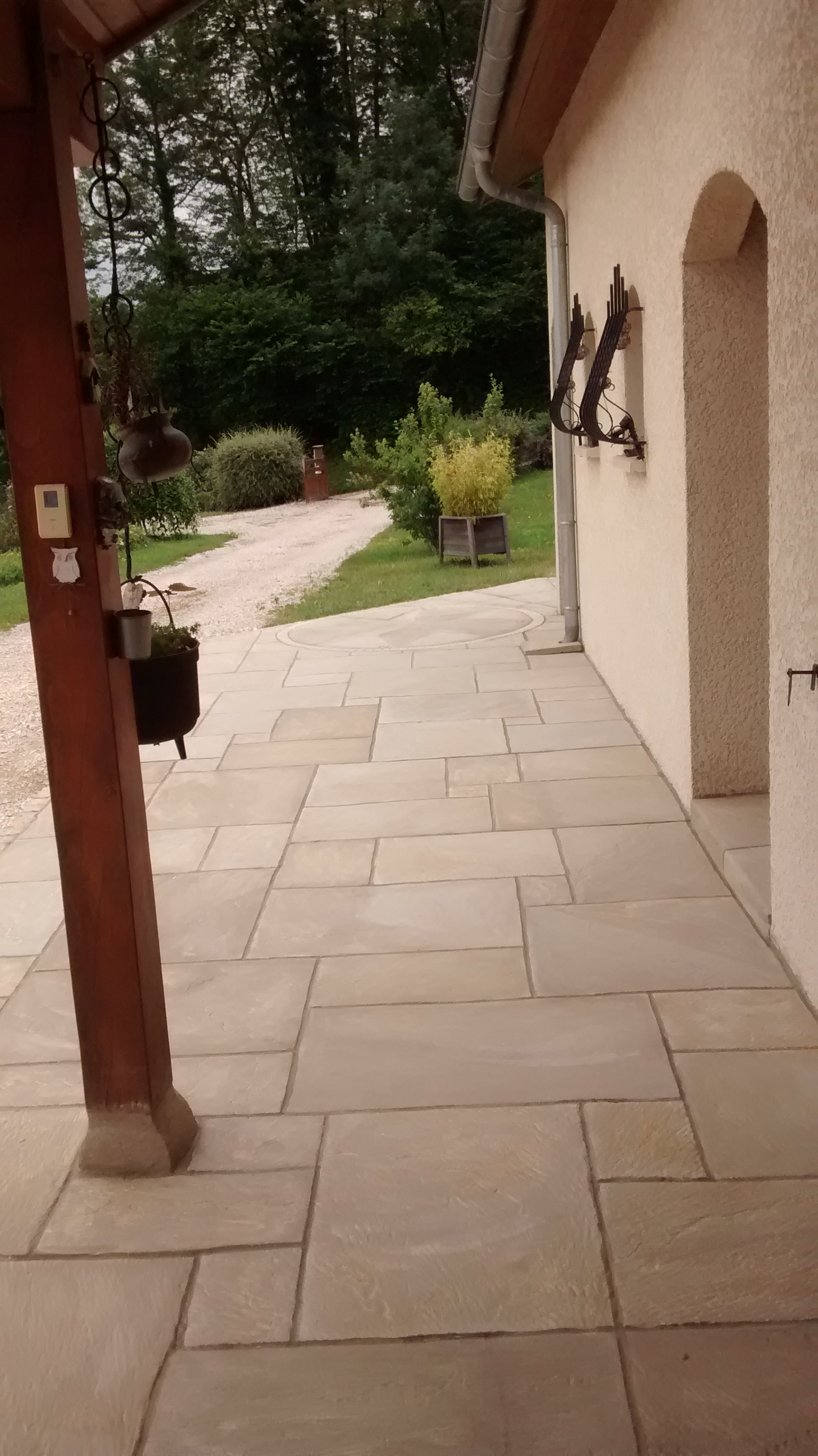 amenagement de terrasse en imitation pierre mortier scultpé